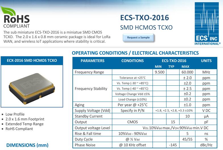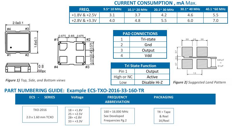 | ECS-TXO-3225-160-TR | ECS Inc. | ECS-TXO-3225 | 16MHz | -30°C ~ 85°C | 0.126" L x 0.098" W (3.20mm x 2.50mm) |