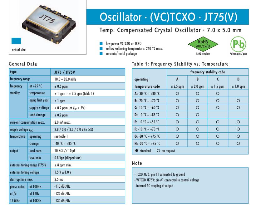 回流焊耐高溫晶振,低功率溫度補償晶體振蕩器