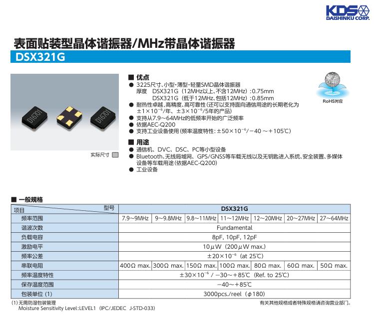 | KDS晶振 | 1C232000AB0V | DSX321G | 3225 | 32.000MHZ |