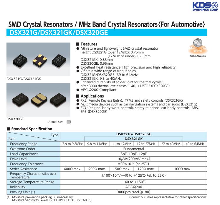 這款晶振的優(yōu)勢遠(yuǎn)不止于此,優(yōu)異的耐熱性、高精度和高可靠性是它的核心底氣.它提供廣泛的頻率范圍,搭配同系列的DSX320GE、DSX321GK型號(hào),覆蓋7.9至64MHz的頻率需求,滿足不同車載系統(tǒng)的使用要求.其中DSX320GESMD晶振型號(hào)更經(jīng)過3000次熱循環(huán)測試,焊點(diǎn)耐久性極強(qiáng),能輕松應(yīng)對(duì)車輛行駛中頻繁的溫度變化,始終保持穩(wěn)定運(yùn)行.