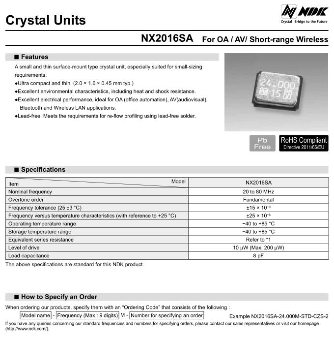 | NX2016SA-80M-STD-CZS-3 | NDK | CRYSTAL 80.0000MHZ 8PF SMD | ±10ppm | -40°C ~ 125°C | 4 | 2016 |