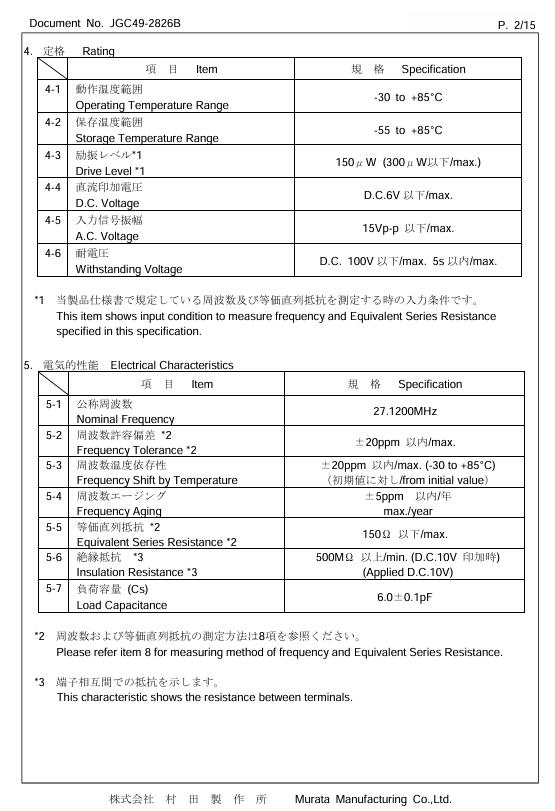 | 型號 | 長x寬 | 高 | 頻率 | 內置負載電容(CL1/CL2) | 其他用途 | 汽車用途 |